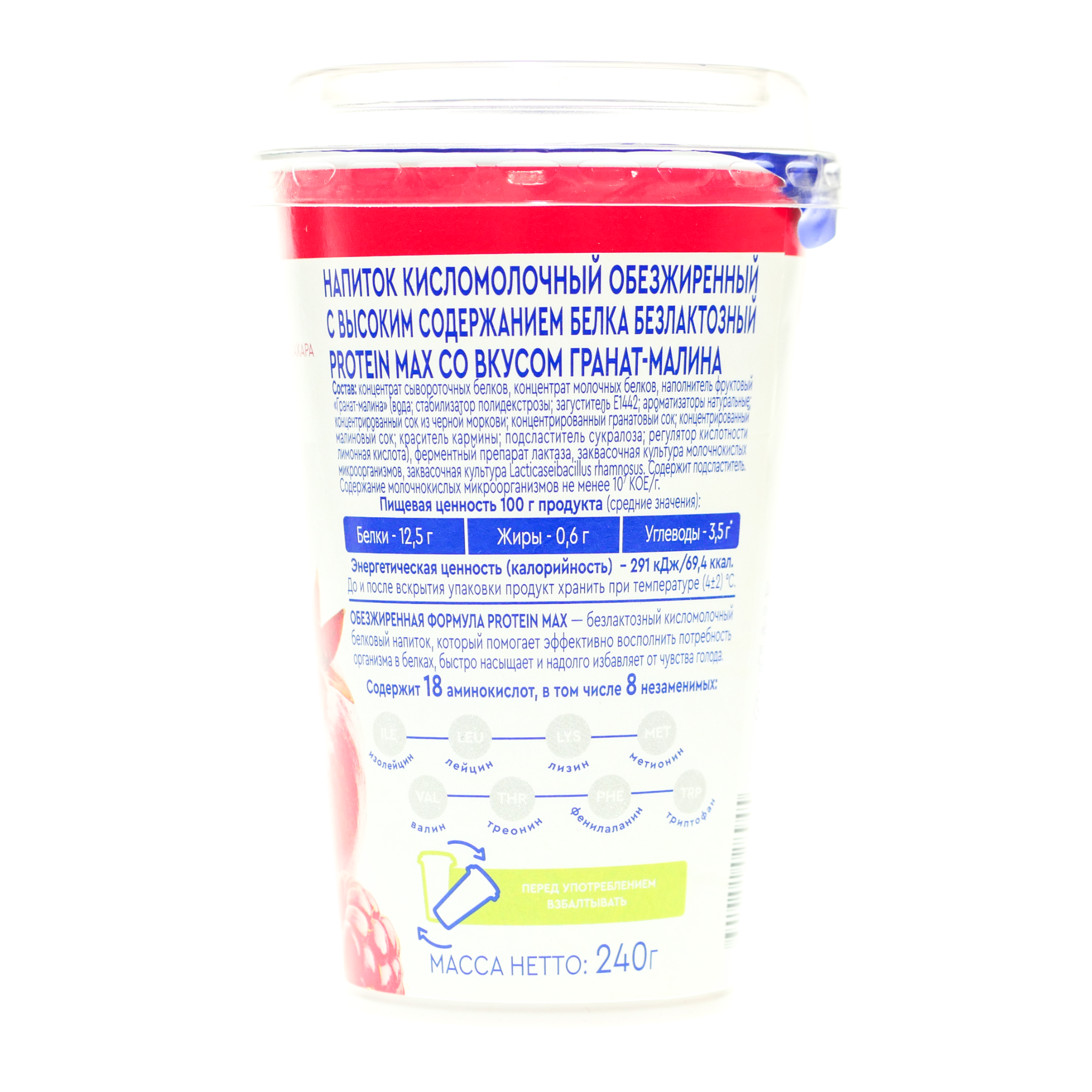 Напиток Протеин Макс 240г обезжир гранат/малина т/п БЗМЖ