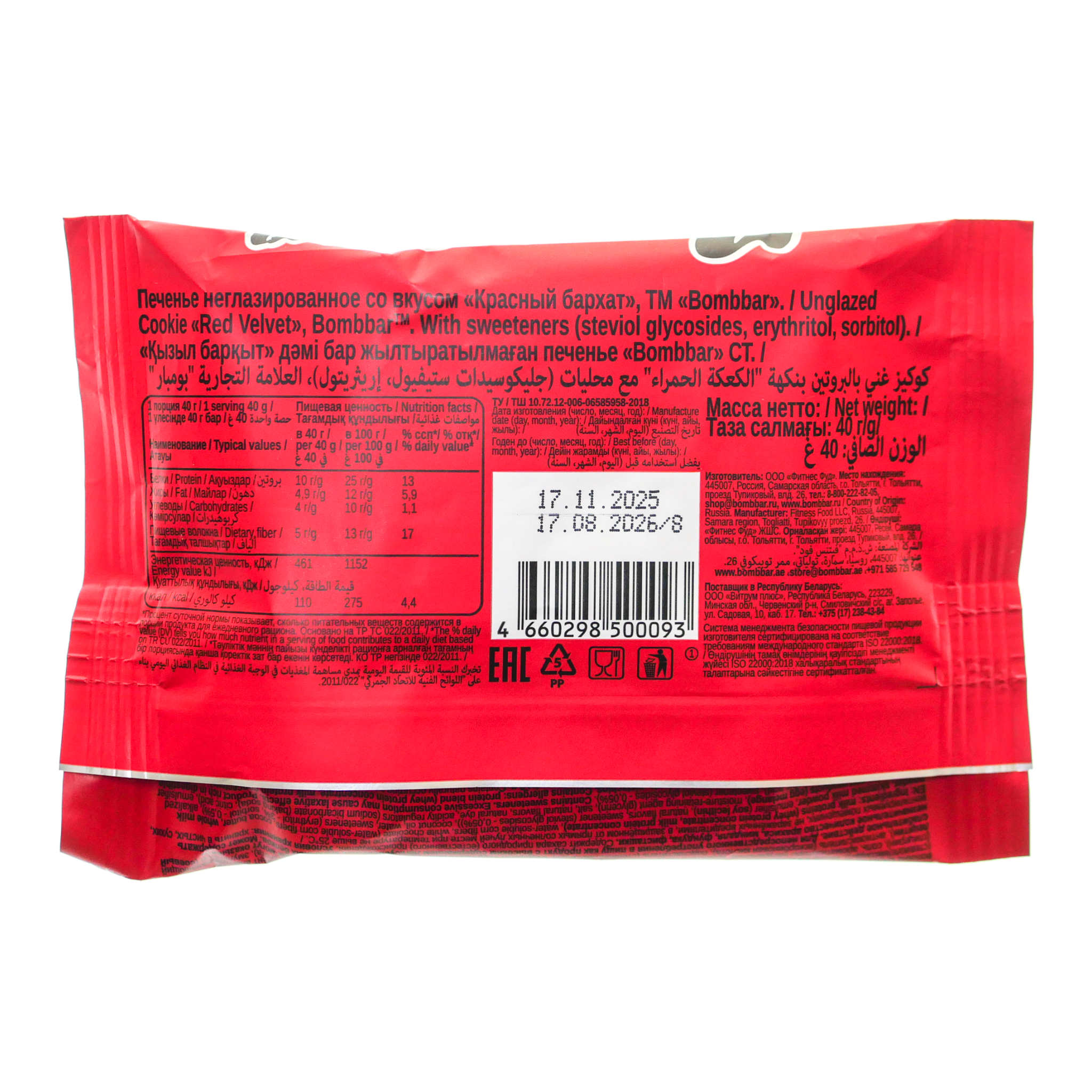 Печенье протеиновое Бомббар 40г красный бархат